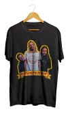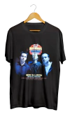 Camiseta branca com estampa colorida da banda Silverchair, mostrando os três integrantes com moldura dourada e o nome da banda em destaque. Camiseta branca com estampa colorida da banda Silverchair, mostrando os três integrantes com moldura dourada e o nome da banda em destaque.